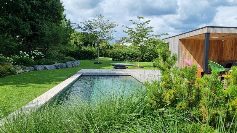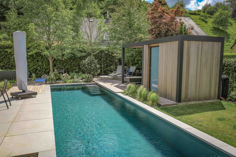 Dieses Refugium im Freien bietet den idealen Rahmen für entspannte Momente oder Nachmittage mit Freunden am Pool.