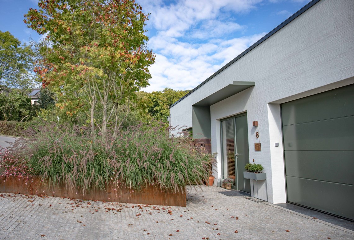 Dieser 2020 fertiggestellte Garten in Bettendorf vereint die Schönheit romantischer Wildnis mit minimalistischer Architektur. Der sorgfältig geplante Außenbereich verkörpert das poetische Zusammenspiel von Architektur und Natur, indem er linearen Minimalismus und amorphe Naturformen gegenüberstellt.
